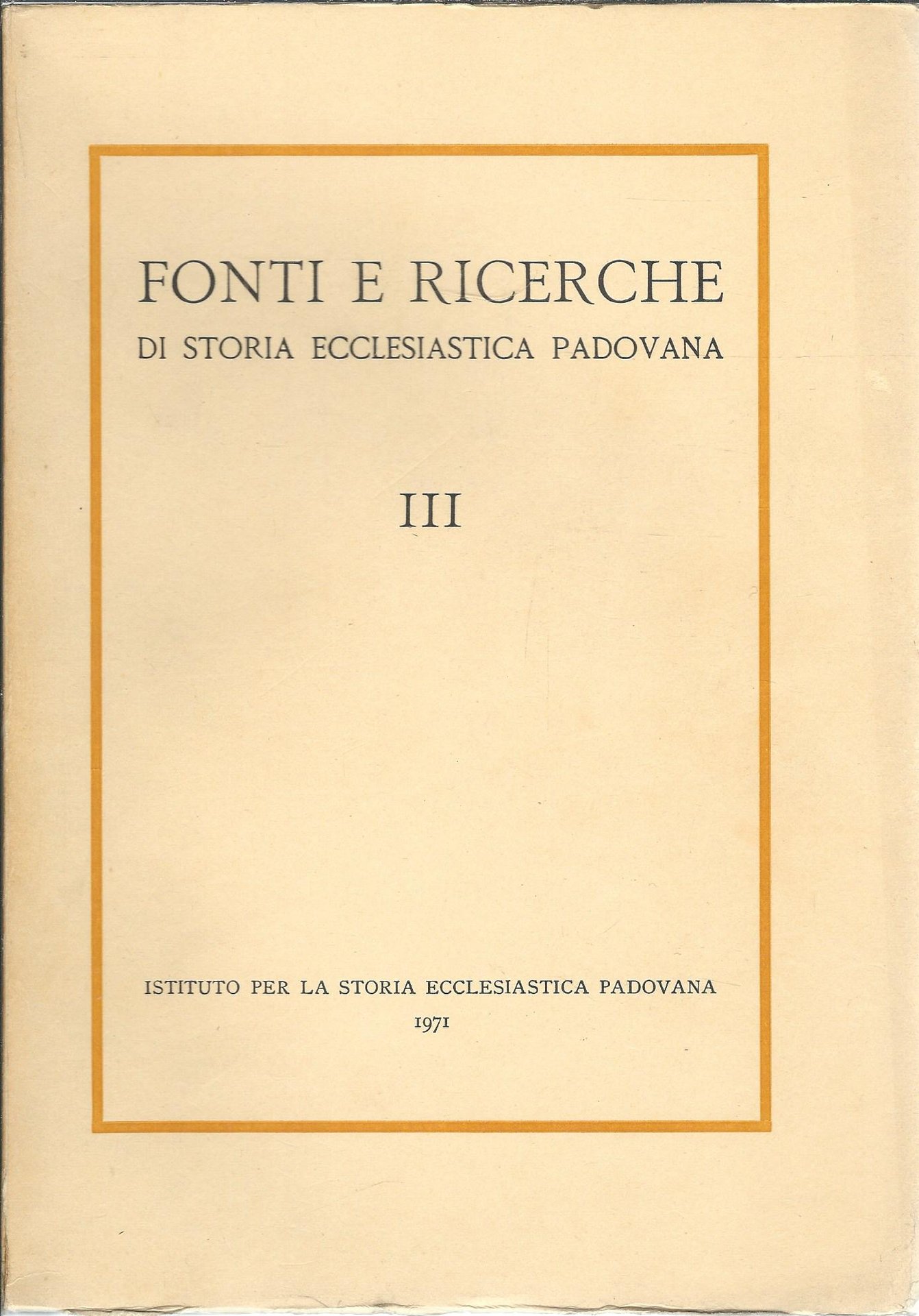FONTI E RICERCHE DI STORIA ECCLESIASTICA PADOVANA - III -