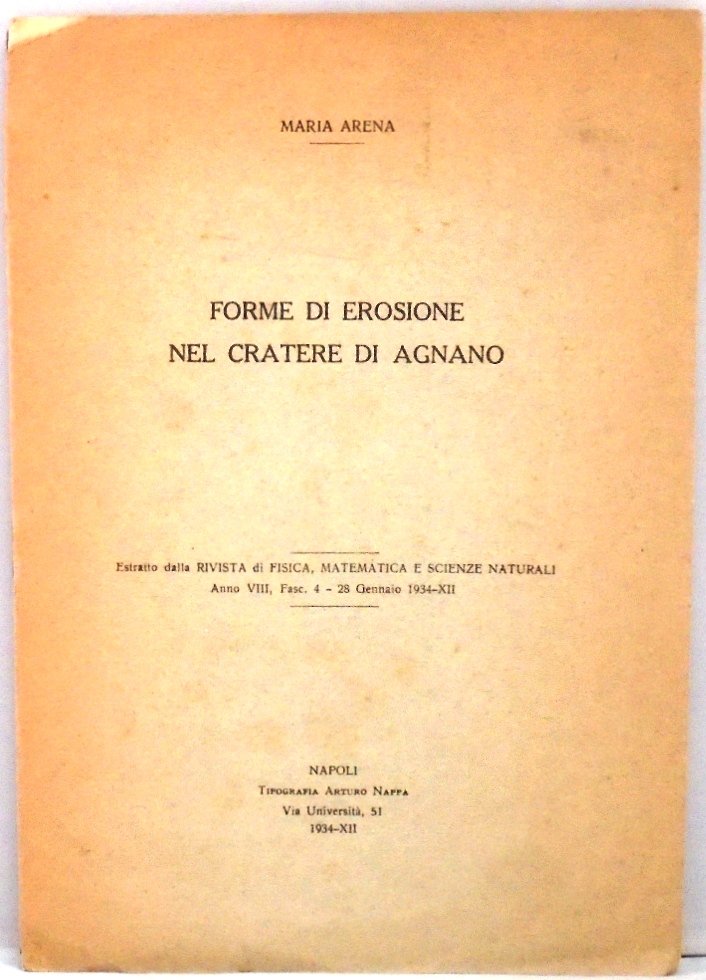 NAPOLI, TIP. NAPPA, 1934. In 8∞: pp. 12, con 4 ill. in b.n. n.t. Bross. edit. Estratto da " Rivista di fisica, matematica e scienze naturali"` anno VIII, fasc. 4, 28 Gennaio 1934.