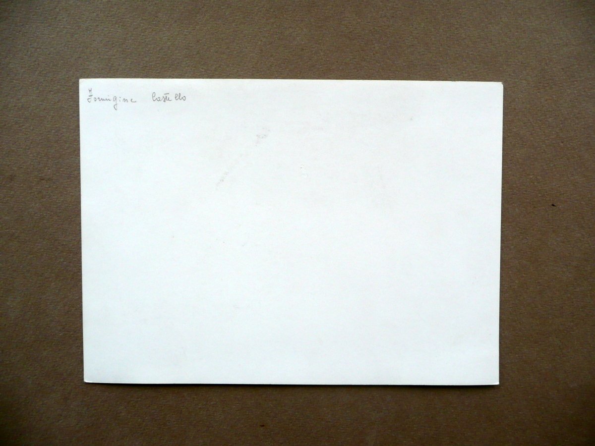 Fotografia, Castello di Formigine (provincia di Modena) Grande fotografia aerea originale Anni '40 del Novecento circa S. d. (anni '40 del Novecento circa); grande fotografia aerea originale in b/n; retro con breve annotazione descrittiva a matita del prececente collezionista. Cm 13x18. Condizioni di conservazione Esemplare in buone condizioni con leggere tracce d'uso; angoli con trascurabili difetti; margine inf. con poche minime lievi abrasioni che interessano in misura pressochè trascurabile l'illustrazione. SC03.D12004 N