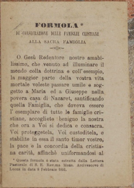 FORMOLA IN CONSACRAZIONE DELLE FAMIGLIE CRISTIANE ALLA SACRA FAMIGLIA LUCAE 23 FEBRUARII 1891