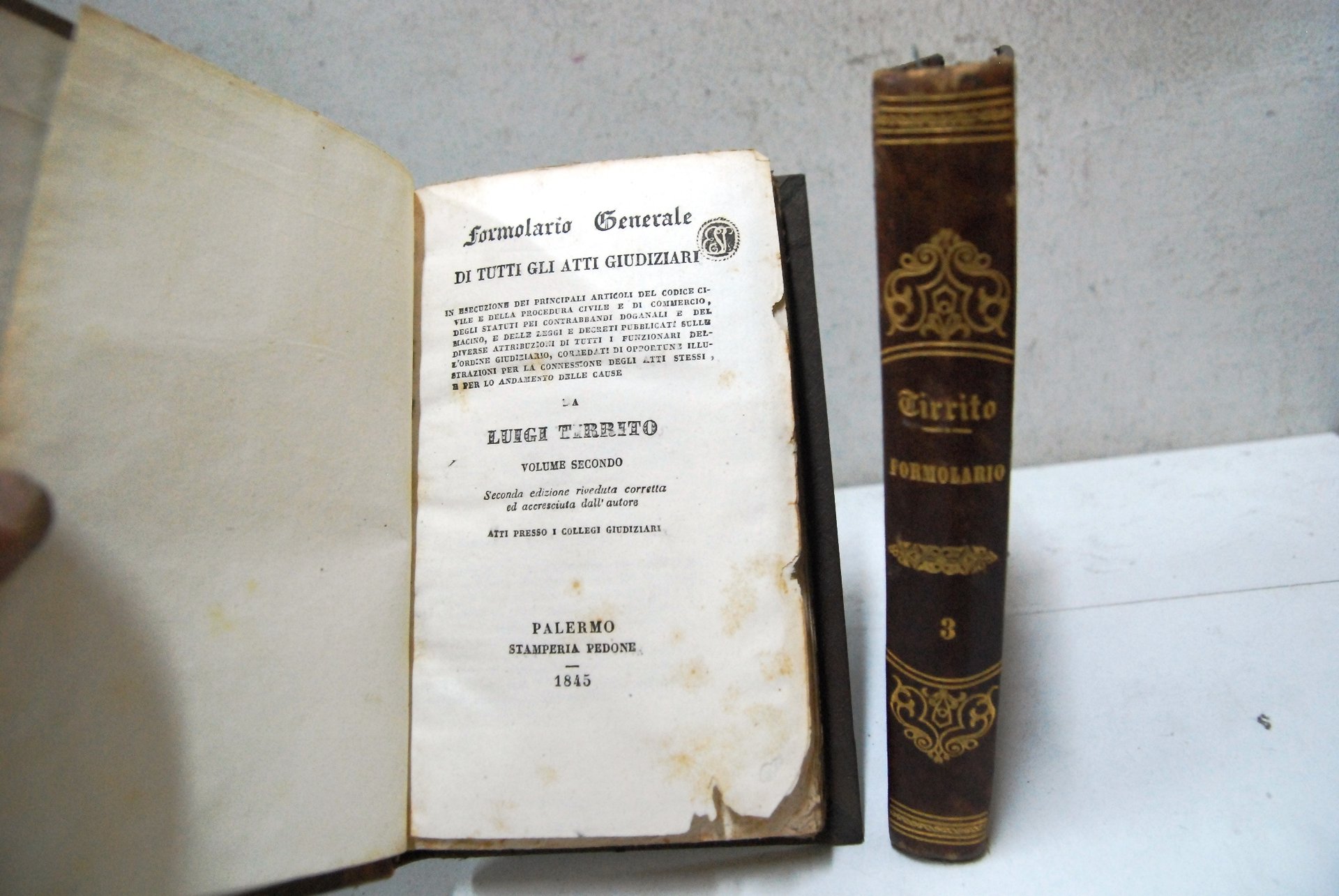 Luigi Tirrito Formolario generale di tutti gli atti giudiziari vol. secondo. Palermo Pedone OTTIME RIGIDA .