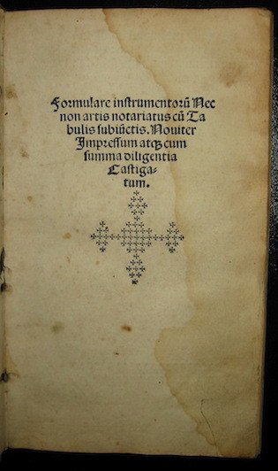 Formulare instrumentorum nec non artis notariatus cum tabulis subiuctis. Noviter impressum atque cum summa diligentia castigatum