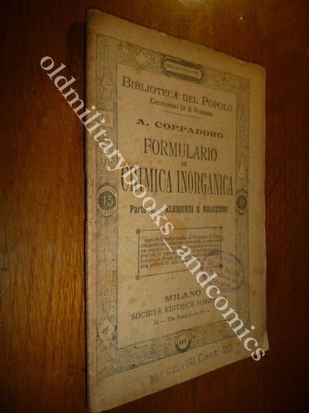 FORMULARIO DI CHIMICA INORGANICA ANGELO COPPADORO s.d. ma 1868