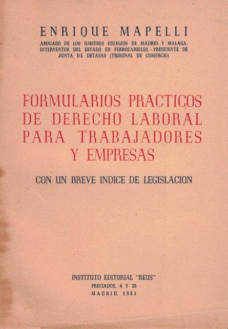 Con un breve índice de legislación. Instituto editorial Reus. Madrid 1951. Ediciones Jura. Rústica. 17x12. 178 pp.