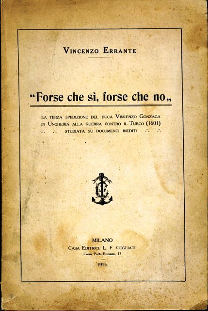'Forse che sì, forse che no'. La terza spedizione del Duca Vincenzo Gonzaga in Ungheria alla guerra contro il Turco (1601) studiata su documenti inediti