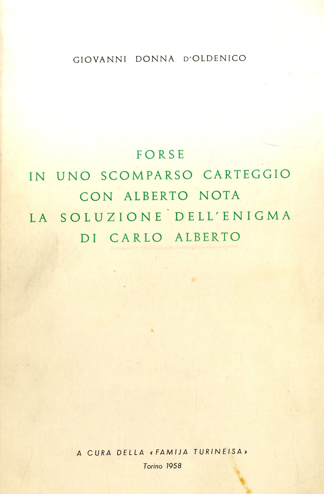 Forse in uno scomparso carteggiocon Carlo Alberto Nota la soluzione dell'enigma di Carlo Alberto