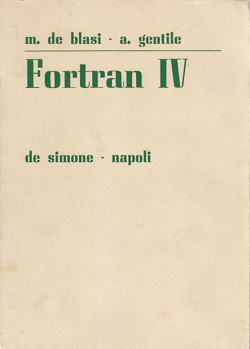 FORTRAN IV di De Blasi e Gentile De Simone editore, 1971. XI + 233 pagine, illustrazioni e tabelle b/n nel testo e fuori testo.