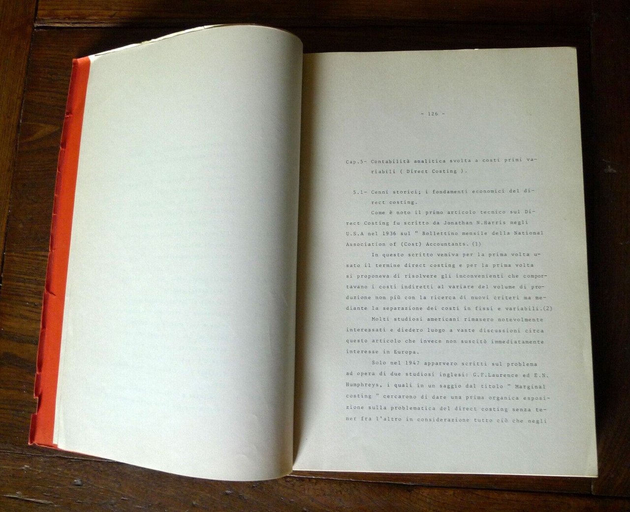 Varia Fortunati Marzaroli,LA CONTABILITÀ ANALITICA D'ESERCIZIO.PARTE SECONDA.DISPENSE, senza informazioni editoriali,brossura, 30x21 cm., pp.126-266,peso: g.900