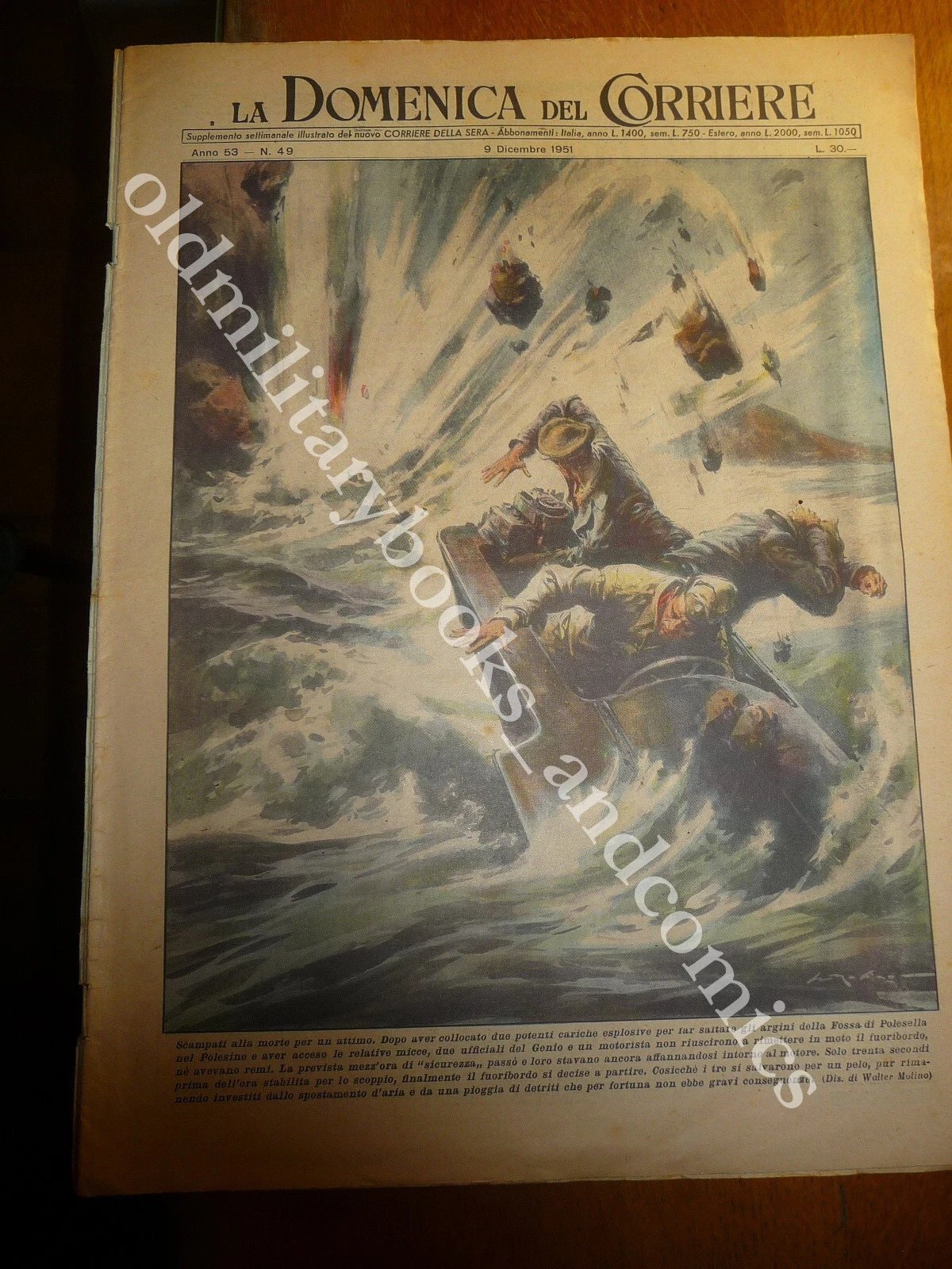 COPERTINA: Ufficiale del Genio in salvo per miracolo dopo aver acceso la miccia per far saltare gli argini della Fossa di Polesella Polesine.