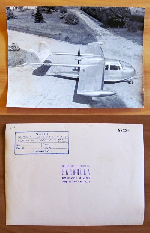 Aereo Nardi modello F.N.333 (produzione a partire dal 1952). Notiziario Fotografico Farabola - Milano, s.d. anni '50. Fotografia originale con timbri d'epoca al retro. 24x18. RARA e in OTTIMO STATO , Ottimo (Fine)