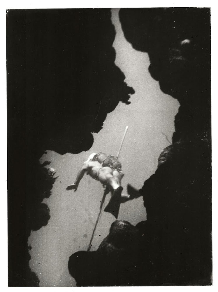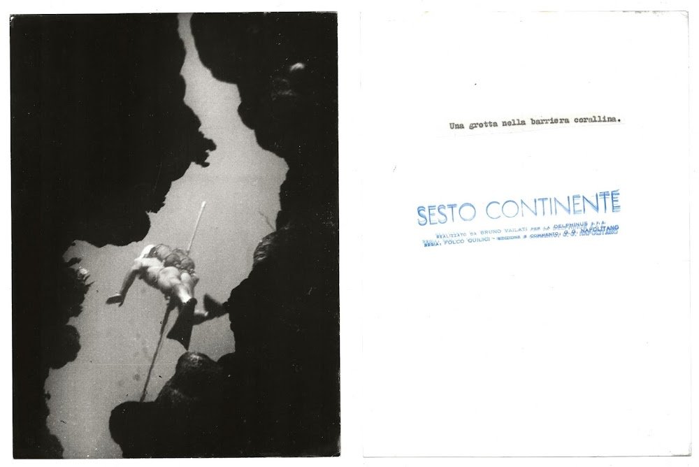 Una grotta nella Barriera Corallina. Foto originale per Sesto Continente realizzato da Bruno Vailati per la Delphinus SpA. Regia: Folco Quilici - Edizione e commento di G. G. Napolitano. 18x24. Rara e in Stato di Nuovo.