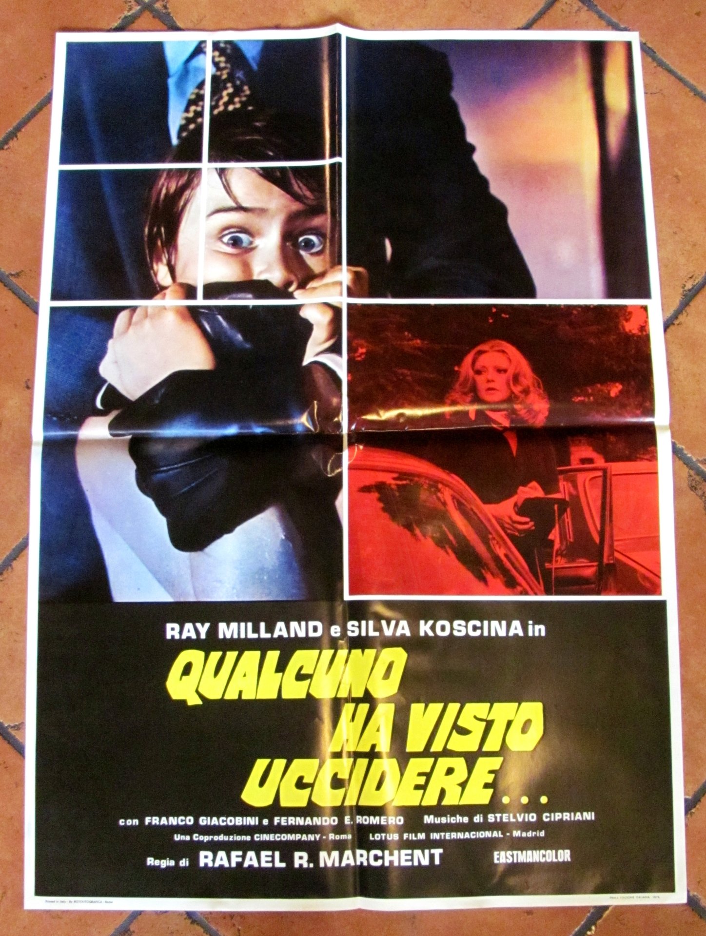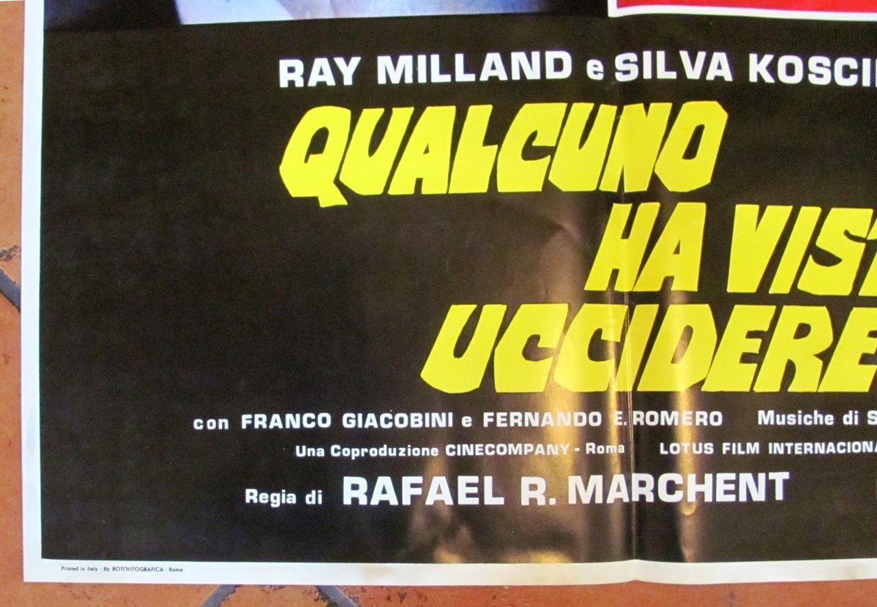 Fotobusta Originale - Qualcuno ha visto uccidere... con Ray Milland e Silva Koscina. Regia di Rafael R. Marchent, I edizione Italiana 1975. 66x96. Ottimo stato. 66 96 , Ottimo (Fine)