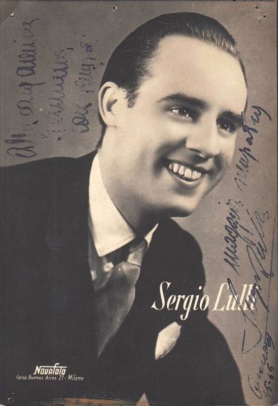 Ritratto su fotocartolina di cm 15 x 10. Dedica e firma autografe del cantante italiano ai margini.