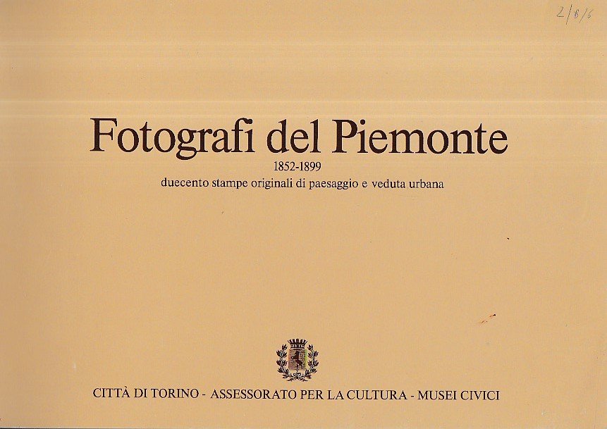 In-4° oblungo, pp. 46, brossura editoriale. 92 illustrazioni fotografiche f.t. riproducenti rare vedute piemontesi della seconda metà dell'Ottocento. Perfetto stato. Testi di Giorgio Avigdor e Maria Adriana Prolo; con schede biografiche dei fotografi, schede delle opere esposte e bibliografia.