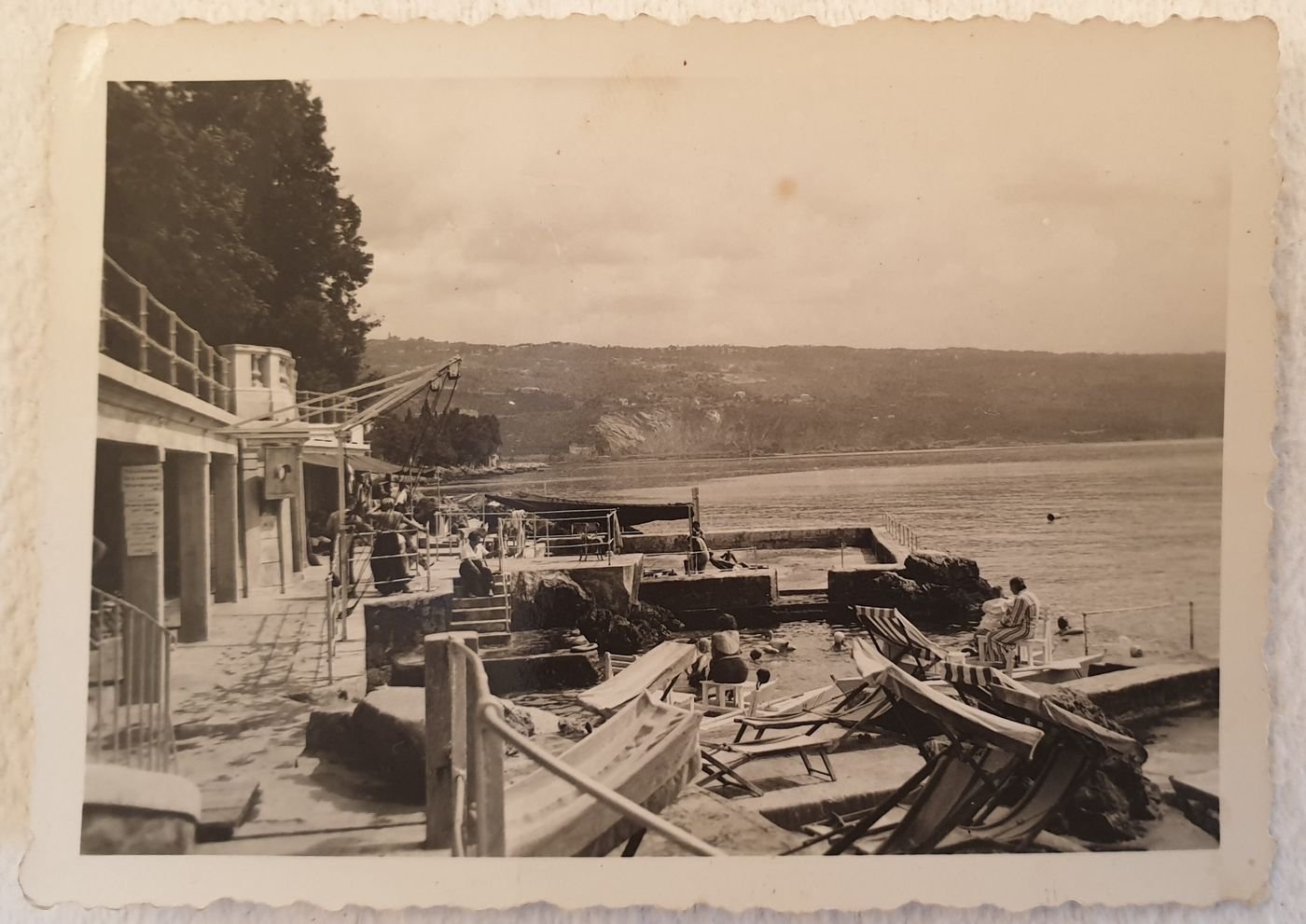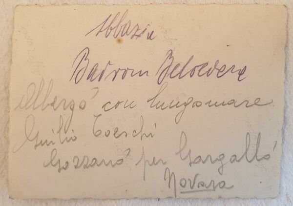 Fotografia originale che mostra il lungomare di Gozzano per Gargallo (Novara) degli anni '50 circa. In ottime condizioni. Cm 6,5x8,5.Original photo showing sea of Gozzano per Gargallo (Novara) of 1950's circa. In good conditions, foxings. Cm 6,5x8,5.