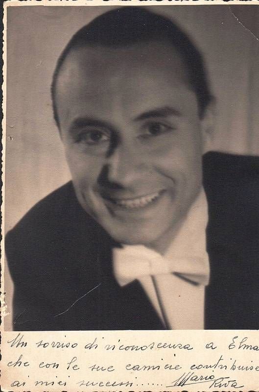 Ritratto fotografico in b/n su cartoncino di cm 16,5 x 11. Mario RIVA, pseudonimo di Mariuccio Bonavolontà (Roma, 26 gennaio 1913 - Verona, 1º settembre 1960), è stato un conduttore televisivo e attore italiano, che raggiunse vasta popolarità negli anni Cinquanta. Strappetto senza mancanze al margine sinistro.