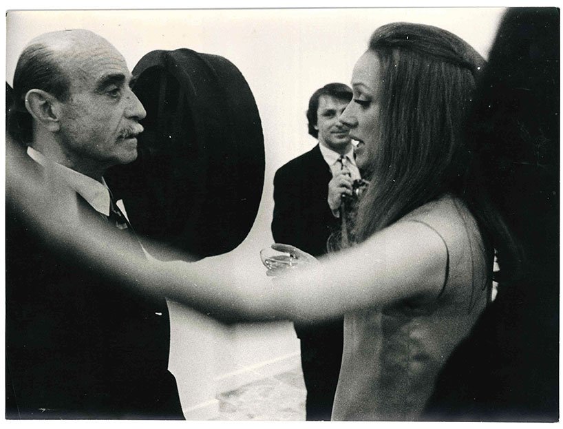 [Fotografia: Lucio Fontana di fronte a una truccatrice]