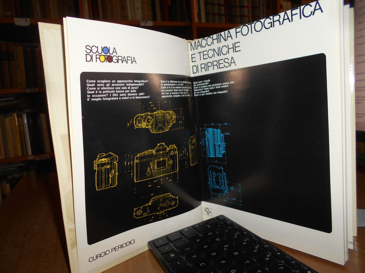 (Fotografia) Macchina fotografica e tecniche di ripresa. Roma, Curcio, 1979. In-8°, cartonato edit. ill. a col. 144 pp. con numerose illustrazioni a colori n.t. Ottimo stato ma mal rifilato dal legatore. Neg. fot. mob. N