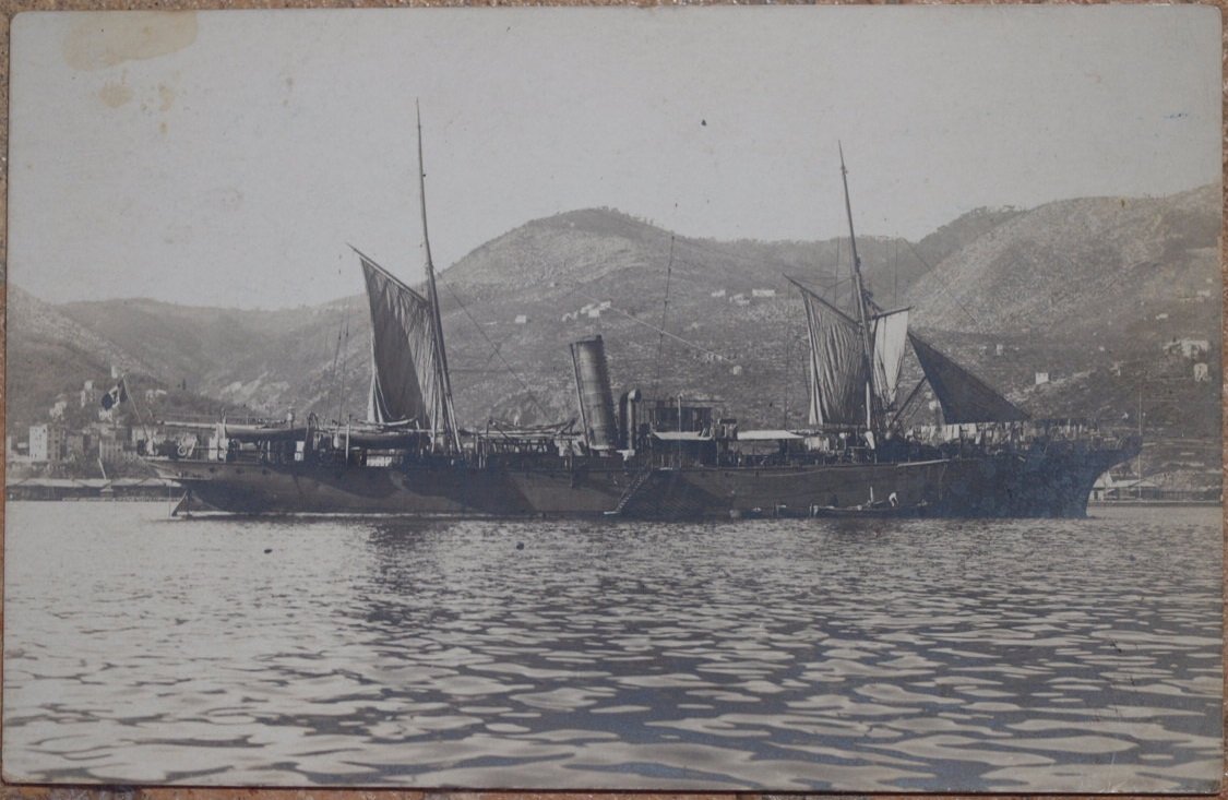 Bella fotografia su cartolina che mostra due navi in mare. Testo manoscritto al verso con timbro postale 1939. In buone condizioni. Foto dim. 9x14.Beautiful photo showing two ships in the sea. Handwritten text with postal stamp 1939. In good conditions.