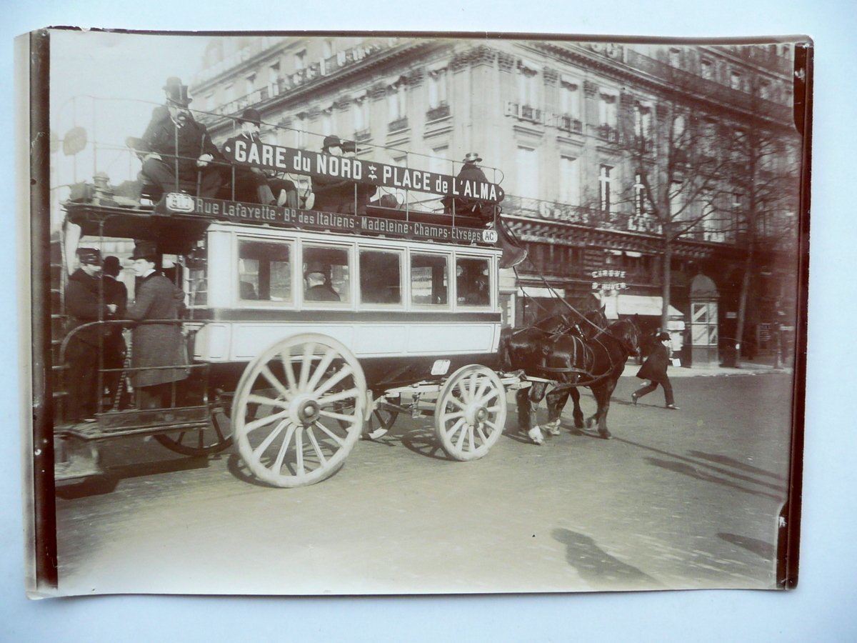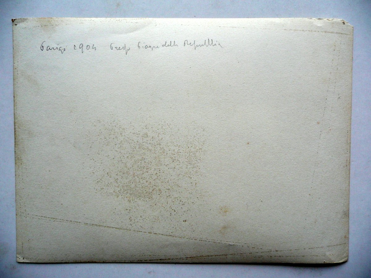 Fotografia Originale, Tram a Cavalli Parigi - Place de la Republique 1904 Fotografia originale d'epoca; retro con annotazione a matita del precedente proprietario, in cui sono indicati l'anno e il luogo dello scatto. Cm 13x18. Condizioni di conservazione Esemplare in buone condizioni con tracce d'uso, angoli con minuscoli difetti e una minima mancanza; margine sup. con un minuscolo strappetto. Retro con minuscoli aloni. SC03.D10932 N