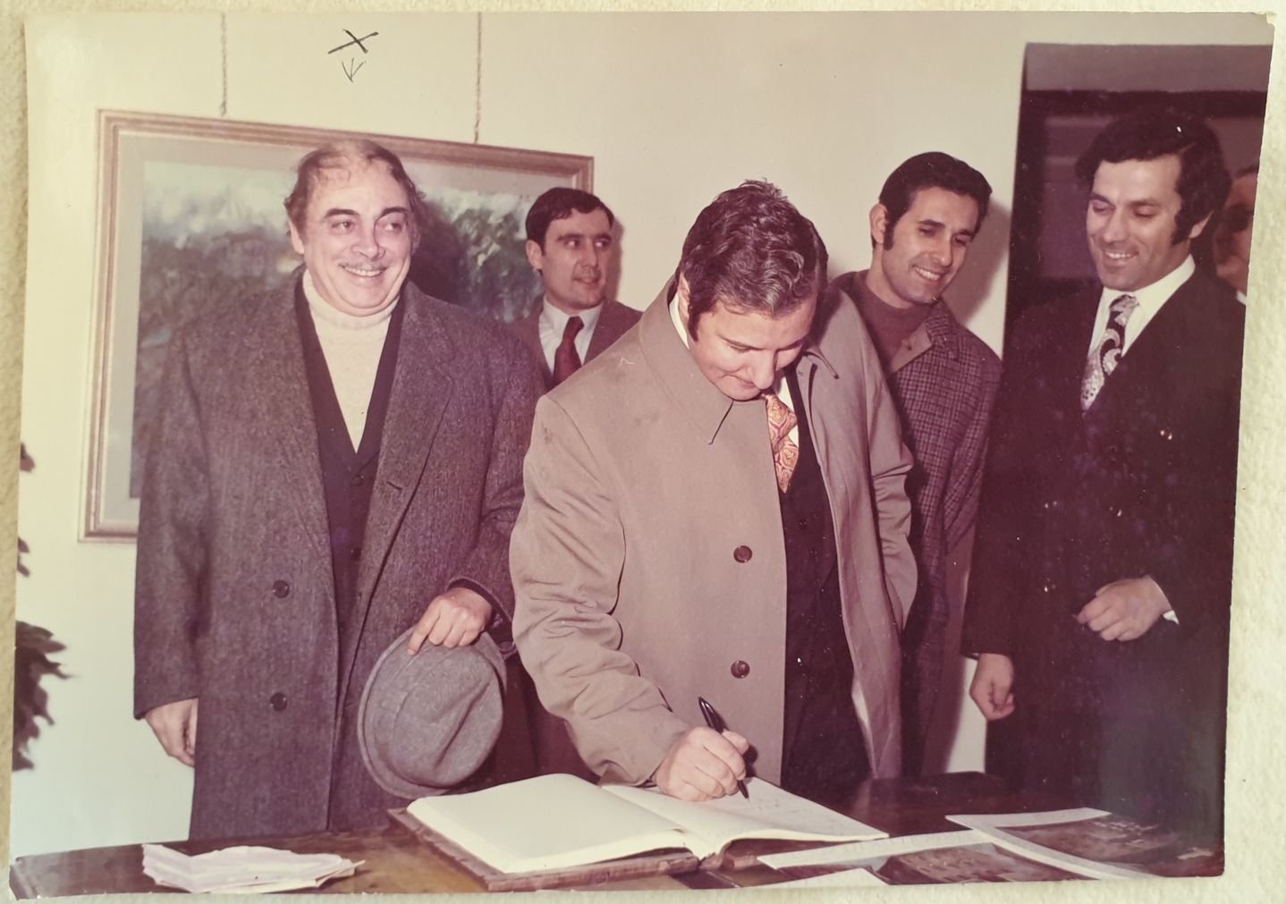 Fotografia originale che mostra il pittore Pietro Guidi nella sua personale mostra a Palazzo Braschi nel 1972. Al verso nota manoscritta "Per Pietro Guidi Personale a Palazzo Braschi 1972" come se la foto fosse un dono al pittore. Al recto indicazione di Pietro Guidi a penna. In ottime condizioni. Cm 12,5x17,5. Original photo showing the painter Pietro Guidi in his personal exibition in Palazzo Braschi in 1972. In the verso handwritten note "Per Pietro Guidi Personale a Palazzo Braschi 1972"as if the photo would be a gift to the painter. In the recto indication of Pietro Guidi with a pen. In very good conditions. Cm 12,5x17,5.