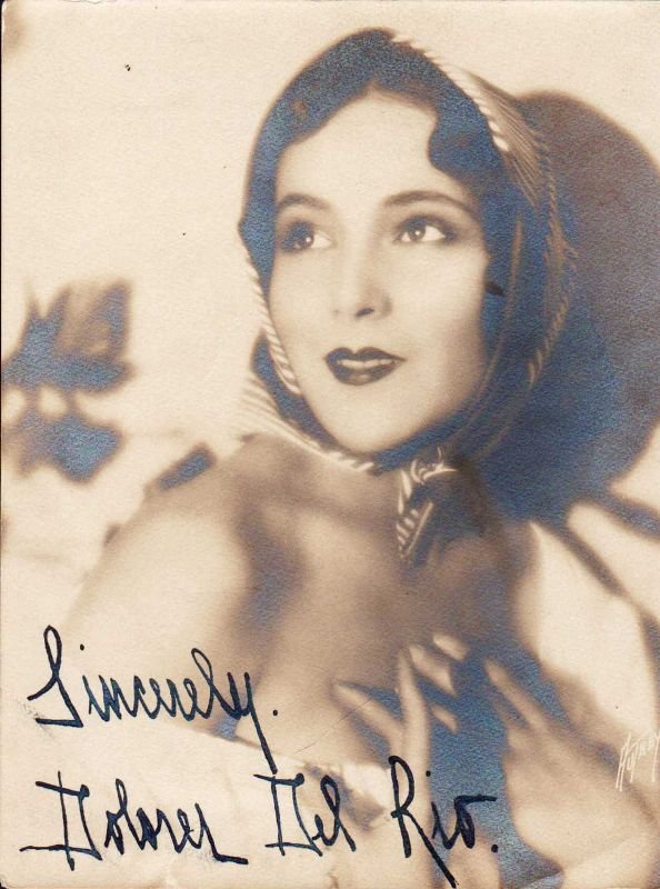 Fotografia in bianco e nero di cm. 21,5x16,5. Bel ritratto con dedica e firma autografa. - (Dolores del Río, pseudonimo di Dolores Martínez Asúnsolo y López Negrete (Durango, 3 agosto 1904 – Newport Beach, 11 aprile 1983, è stata un'attrice e ballerina messicana interprete di numerosi film prettamente a sfondo esotico e di avventura.