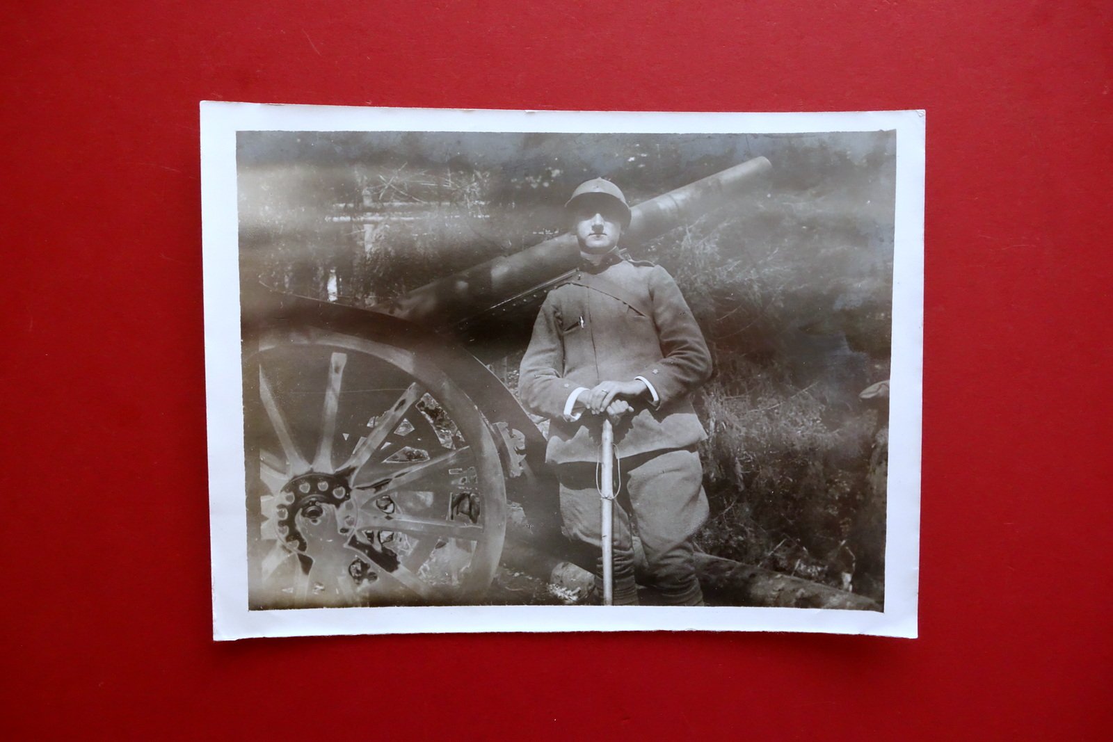 Fotografia Soldato in Divisa Obice Artiglieria WW1 Grande Guerra Originale