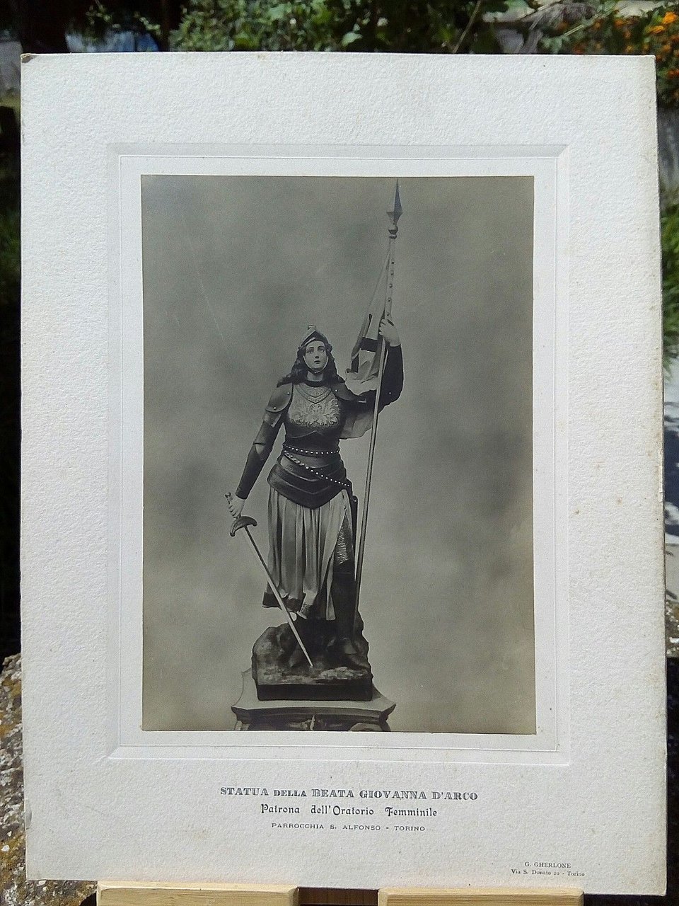 2 fotografie originali inizi '900soggetto scultura in cartapesta dellaBeata Giovanna D'Arcoautore Luigi Guacci di LecceLa prima fotografia documenta la statua nello Stabilimento dello ScultoreFoto F. Lazzaretti e C Foggiamisure con catoncino cm. 21x26 La seconda foto documenta dove la statua è stata collocataOratorio femminile (Patrona)Parrocchia S.Alfonso - TorinoFoto di G. Gherlone Torinomisure con cartoncino cm. 26x34in buono stato(gr. 300)E21165/2