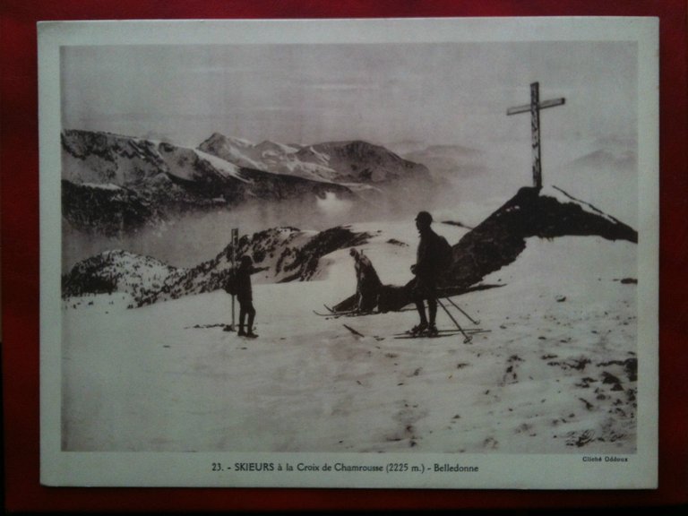 Foto incisione inizi '900Photogravure début '900Francia/France BelledonneSkieurs à la Croix de Chamrousse (2225m.) in buono stato/bon étate1105