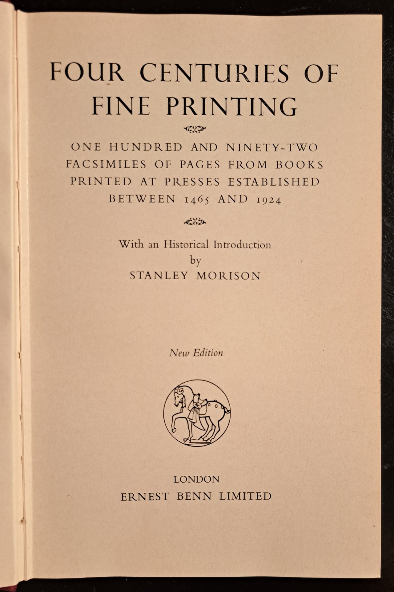 Four centuries of fine printing. One hundred and ninety - two facsimiles of pages from books printed at presses established between 2465 and 1924.