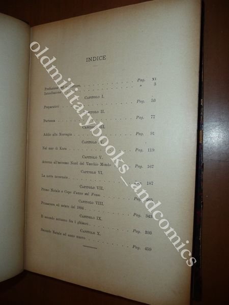 DESCRIZIONE: Ed. Enrico Voghera, Roma, 1901 II^ Ed. In 8°, leg. s.pelle marrone e cart. rossa marmorizzata con tit. oro al dorso, pp. 540 + 509 con 56 + 70 foto e incisioni b/n n.t., 2^ ediz. Alla fine del secondo vol. 2 carte rip. in una tasca. Una è la: Carta fisica delle Regioni Polari Artiche; l'altra è la: Rotta della Spedizione Polare Norvegese. Fridtjof Nansen (Store Frøen presso Christiania, 10 ottobre 1861 – Bærum, 13 maggio 1930) è stato un esploratore, scienziato e politico norvegese, noto anche come Federico Nansen, vincitore del Premio Nobel per la pace nel 1922. L'osservazione delle correnti durante la navigazione nei mari della Groenlandia, ed il ritrovamento di alcuni reperti di un naufragio, fecero sì che Nansen si convincesse dell'esistenza di una corrente artica, che dalla Siberia fluiva verso il Polo Nord e da lì verso la Groenlandia. Per dimostrarne l'esistenza fece costruire una nave, la Fram e il 24 giugno 1893 salpò da Christiania, l'attuale Oslo, per raggiungere il Polo Nord dalle isole della Siberia, facendosi sospingere dall'ipotizzata corrente. La nave, attrezzata con viveri per sei anni e carburante per otto, fu appositamente lasciata andare alla deriva fino ad essere imprigionata dai ghiacci. Ben presto, divenne però chiaro che il movimento della nave era troppo lento; il 14 marzo del 1895 Nansen, accompagnato da Fredrik Hjalmar Johansen, abbandonò la nave utilizzando delle slitte trainate da cani e dei kayak, e decise di tentare di raggiungere il polo a piedi. Durante la marcia i due incontrarono condizioni meteorologiche pessime, e giunti alla latitudine di 86° 14' N decisero di abbandonare il tentativo e di marciare verso la Terra di Francesco Giuseppe. Fino a quel momento nessun altro uomo era giunto così vicino al Polo Nord. I due furono costretti a trascorrere l'inverno sull'isola, in condizioni difficilissime; nell'estate del 1896, incrociarono fortunosamente una spedizione britannica guidata da Frederick George Jackson, che li rimpatriò il 13 agosto dello stesso anno. Una settimana dopo anche la Fram (sulla quale era rimasto il resto dell'equipaggio mentre Nansen e Joahnsen provavano a raggiungere il Polo via terra) rientrò in patria. CONDIZIONI: Ottime. Ex-libris con un timbro al frontespizio di entrambi i volumi. Normali segni di usura all'esterno. PESO / WEIGHT: 1800 gr. without package