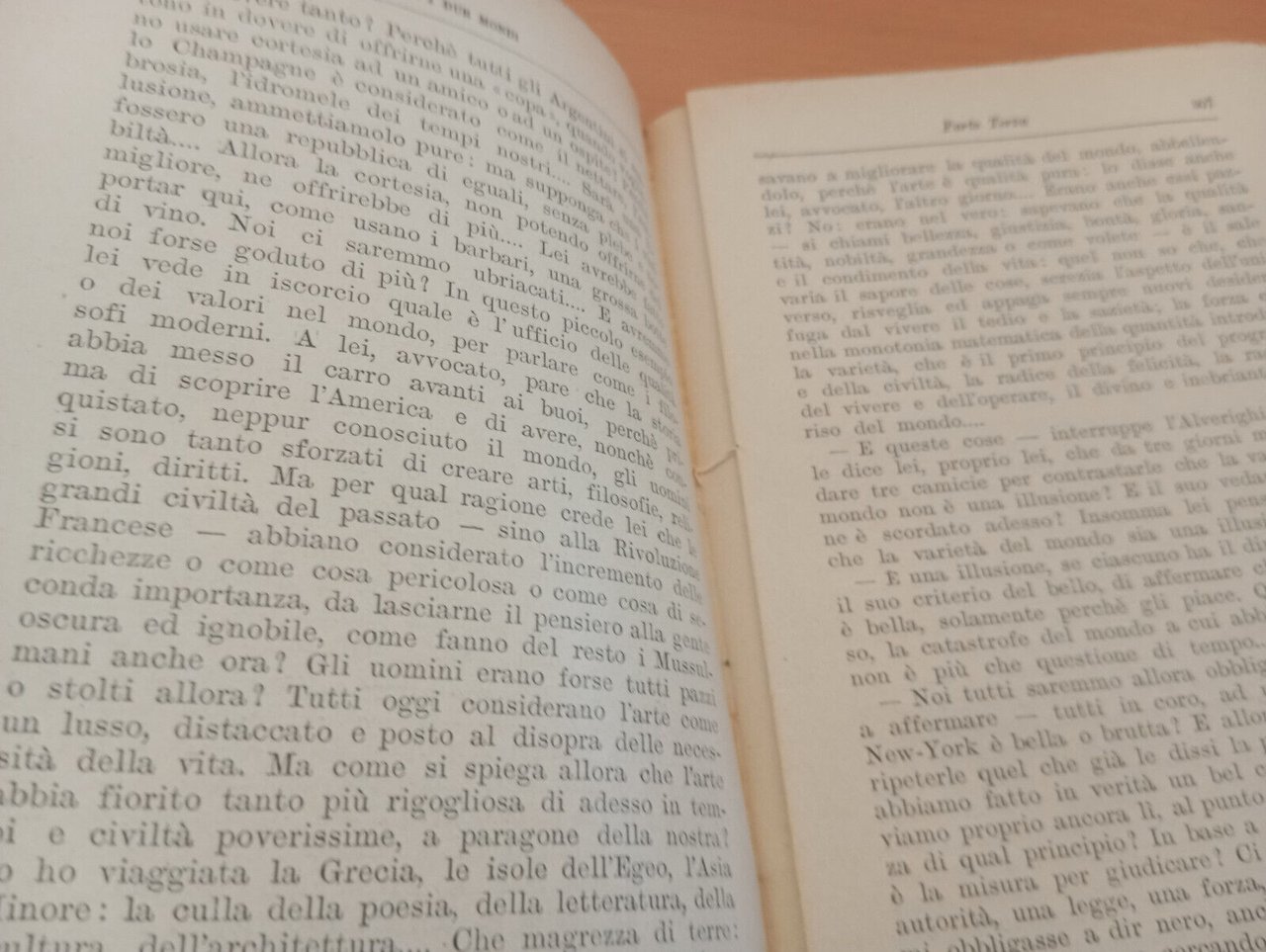 Copertina con segni di usura, fioriture e alcune ammaccature sul dorso, come da foto. Tagli fortemente scuriti, pagine ingiallite. Indebolimento della legatura in alcuni punti, come da foto, ma nel complesso non compromessa.