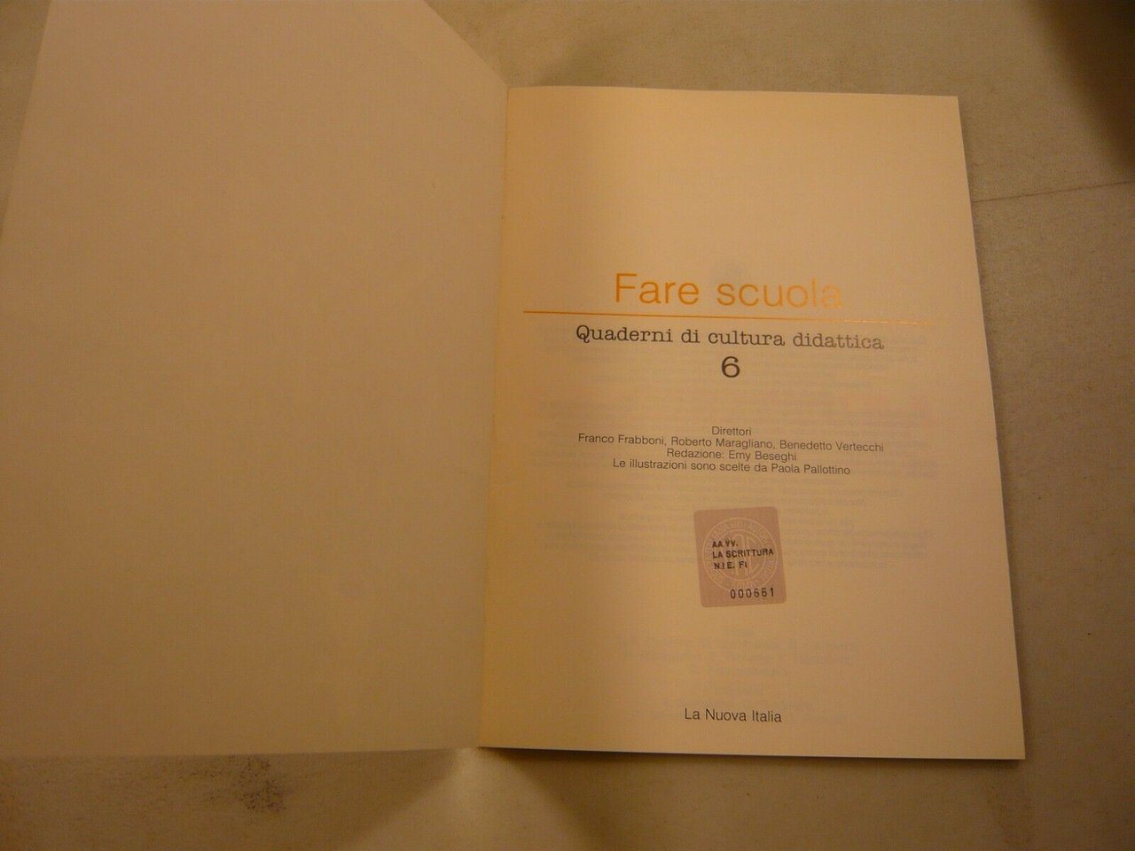 direttori: Franco Frabboni, Roberto Maragliano, Benedetto VertecchiFARE SCUOLA n. 6. La scritturaQuaderni di cultura didatticaLa Nuova Italia, BolognaBrossura, 26x19cm, pp. 96