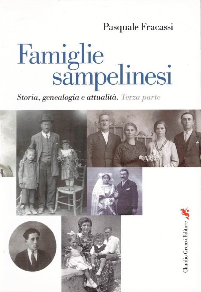 Pasquale Fracassi, Famiglie sampelinesi. Storia, genealogia e attualità, Claudio Grenzi Editore, Foggia 2011-2014, 3 voll., pp. 670, ill. b.n., cm 24, br. ed. Disponibili i volumi I-III. Vol. I: Parte prima. Capoccetti, Casale, Cofini, Colangelo, De Tiberis, Del Manzo, Lanciani, Ruscitti, 2011, pp. 126, ill. b.n. Vol. II: Seconda parte. Agnitti, Albertazzi, Anselmi, Babbo, Boleo, Campomizzi, Celi, Celio, Ciccarelli, Collacciani, 2013, pp 259, ill. b.n. Vol. III: Terza parte. D’Agostino, D’Eugenio, Del Fosco, Del Rosso, Di Bernardo, Di Genova, Di Giovambattista, Di Loreto, Di Pangrazio, 2014, pp. 285, ill. b.n. Interessante e prezioso lavoro di ricerca e documentazioni che ricostruisce, attraverso il ricorso alle fonti d’archivio e agli archivi fotografici delle singole famiglie, la storia e gli alberi genealogici delle principali casate di San Pelino, frazione di Avezzano, nella Marsica. Molto ricca e assai suggestiva la riproduzione di foto d’epoca che arricchisce i volumi. Minime tracce d’uso alla brossura del secondo volume, per il resto perfetti.