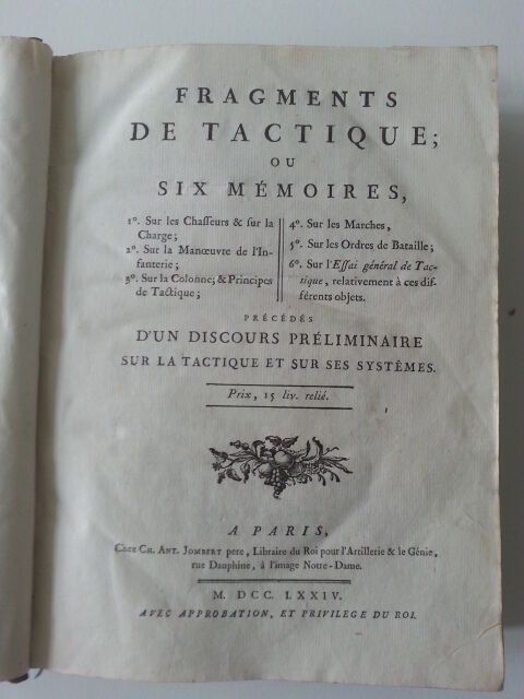 FRAGMENTS DE TACTIQUE OU SIX MEMOIRES + 3 MEM. PARIS CHEZ CH. ANT. JOMBERT 1774