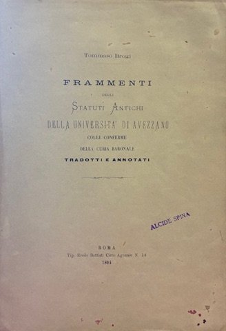 Frammenti degli statuti antichi della Università di Avezzano colle conferme della Curia baronale. Tradotti e annotati