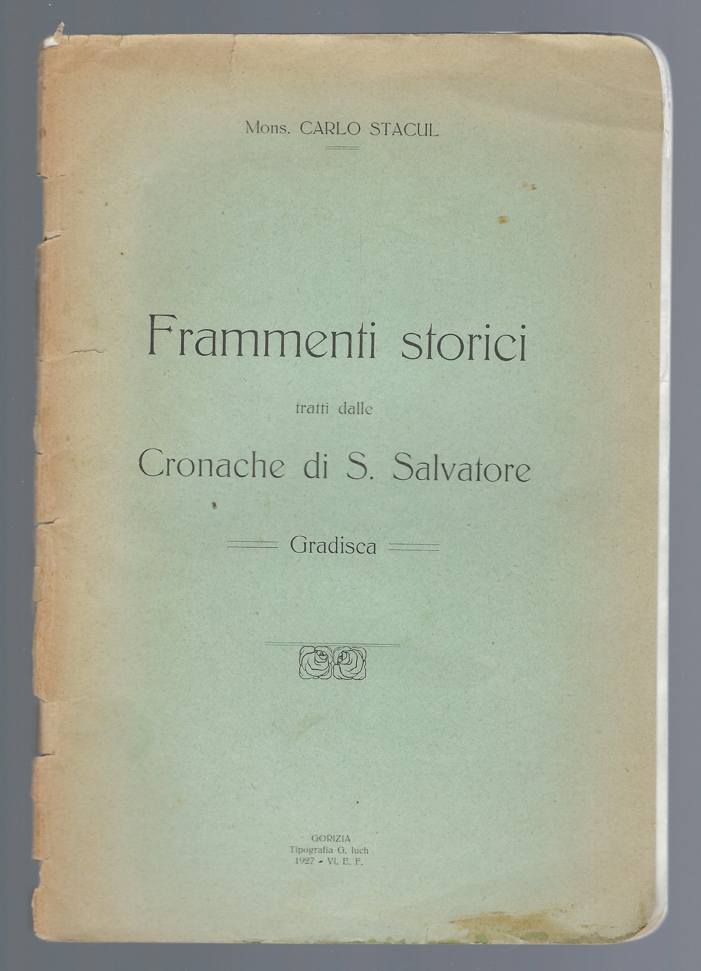 Brossura editoriale che presenta diverse tracce d'usura alla coperta, come strappi, pieghette e bruniture.