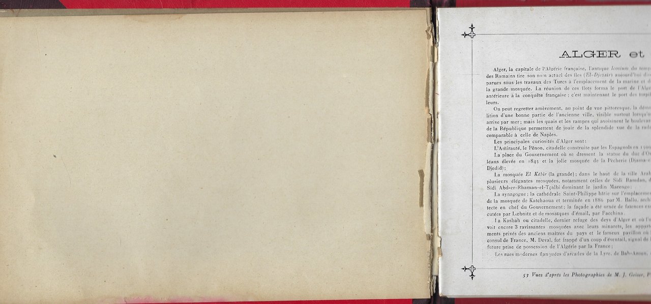 53 vedute in bianco e nero con notizie delle più belle località algerine.