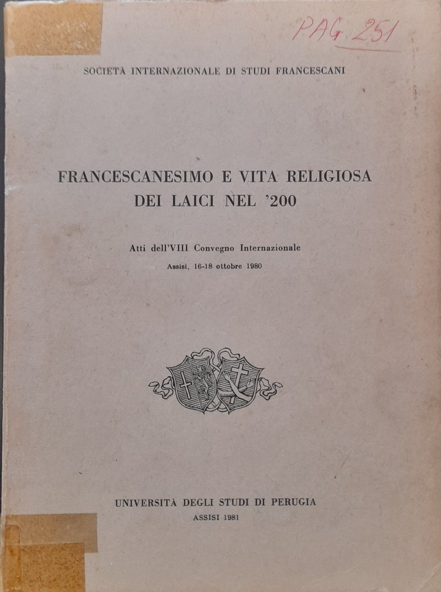 Francescanesimo e vita religiosa dei laici nel '200. Atti dell'VIII Convegno internazionale, Assisi 16-18 ottobre 1980