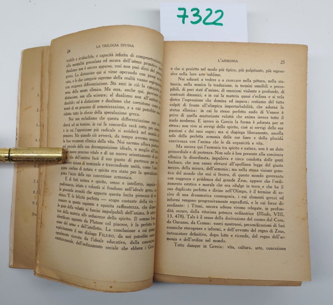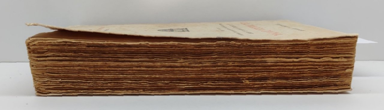 Legatura morbida editoriale con vistose fioriture e aloni ai piatti e al dorso, pieghe ed abrasioni ai margini dei piatti, dorso con pieghe di lettura abrasioni, tagli irregolari bruniti, fioriture diffuse alle pagine interne, al frontespizio firma di possesso e numero di catalogazione, pagine interne brunite margini inferiore dei tagli irregolari, legatura leggermente allentata numero pagine 418 dimensioni cm 19,1 * 12,6