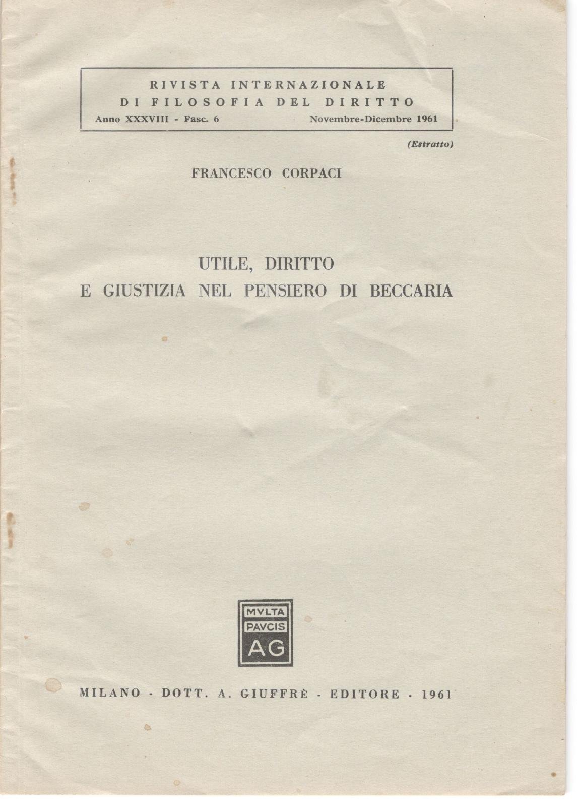 Francesco Corpaci Utile diritto e giustizia nel pensiero di Beccaria estratto GiuffrË 1961