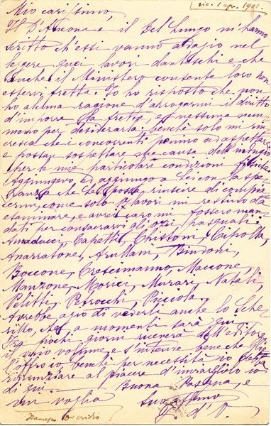intero postale manoscritto e firmato di Francesco D'Ovidio; ottimo es.