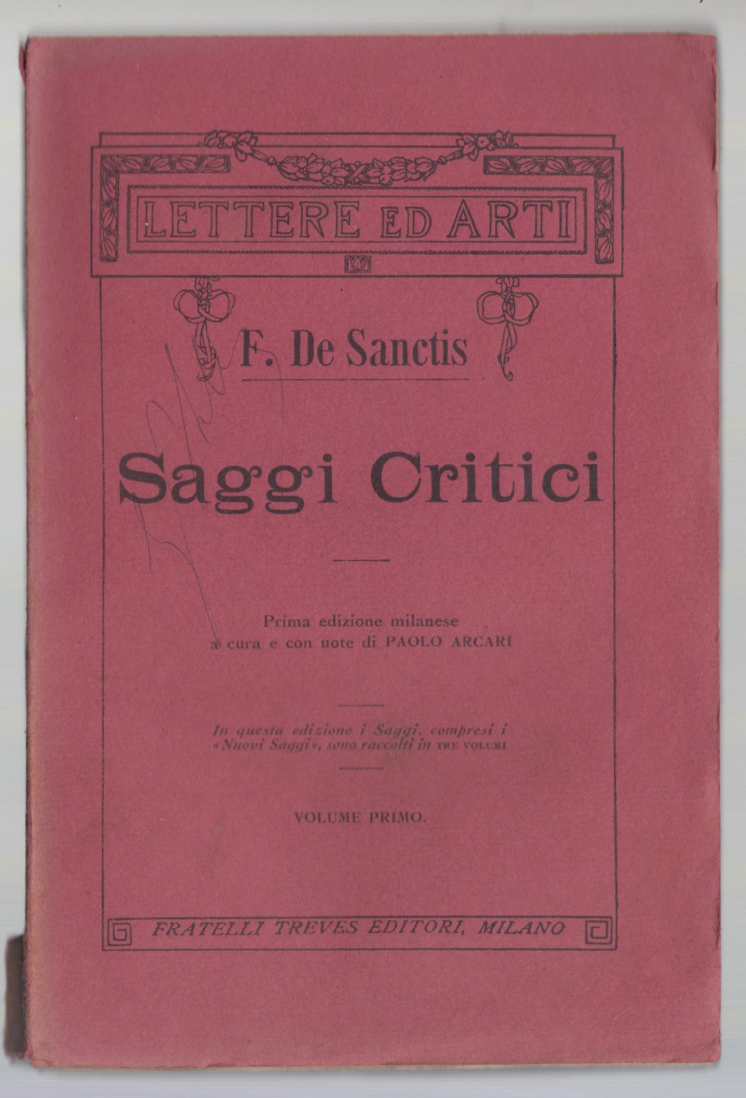 Francesco De Santis Saggi critici Treves 1914 tre volumi Abela Carboneria