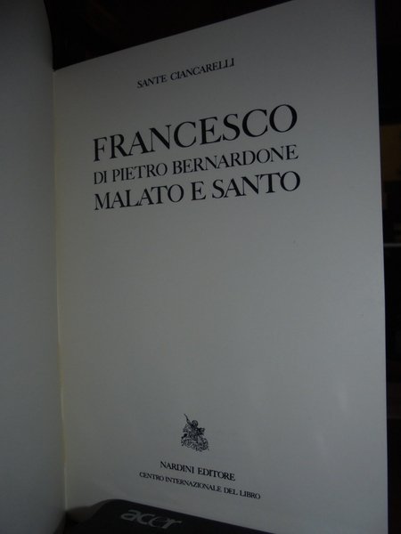 Sante, Ciancarelli. Firenze, Nardini Editore, 1974. FRANCESCO Di Pietro Bernardone Malato e Santo. In-8°, cartoncino edit. con alette. 223 pp. con alcune illustrazioni n.t. Come nuovo. Uff. stanz. TV.