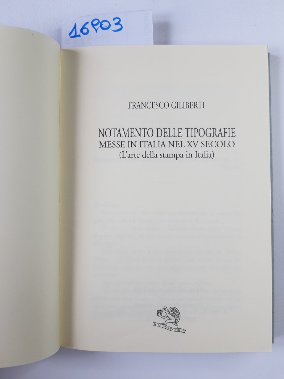 Francesco Giliberti Notamento delle tipografie messe in Italia nel XV secolo L'arte della stampa in Italia 1∞ edizione 1995