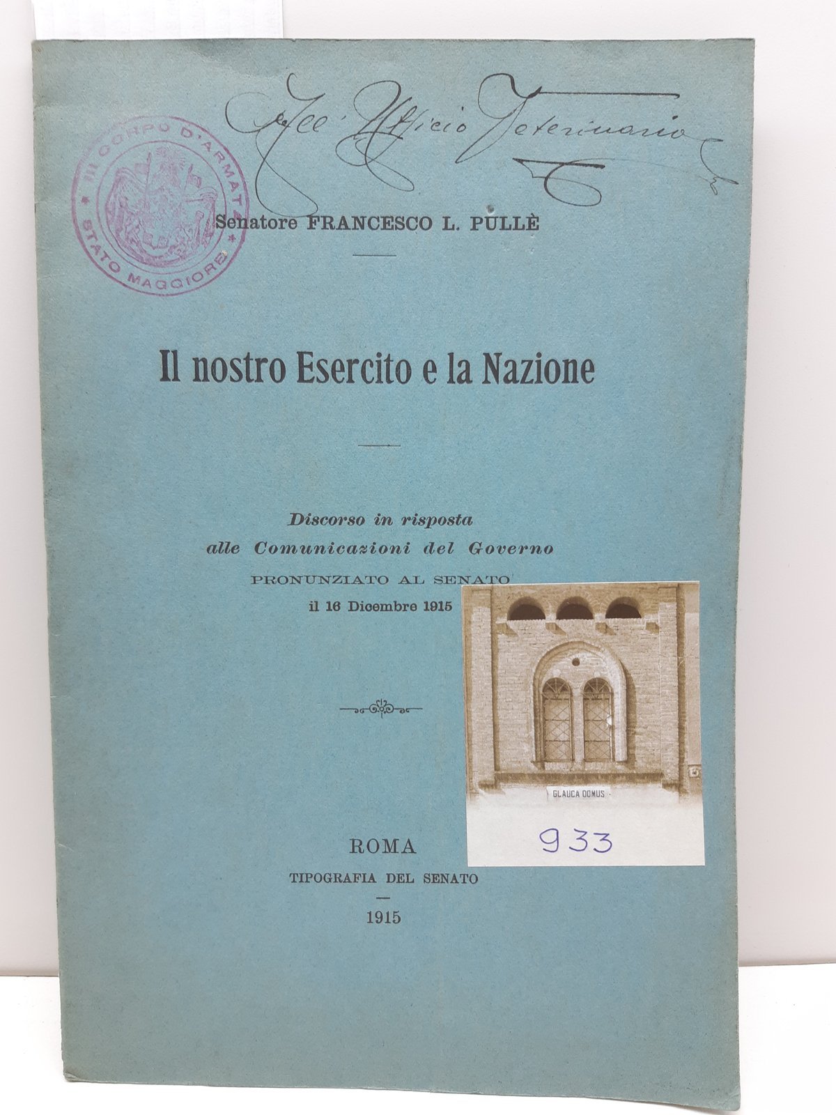 Francesco PullË Il nostro esercito e la nazione discorso del 16 dicembre 1915 Tip. del Senato