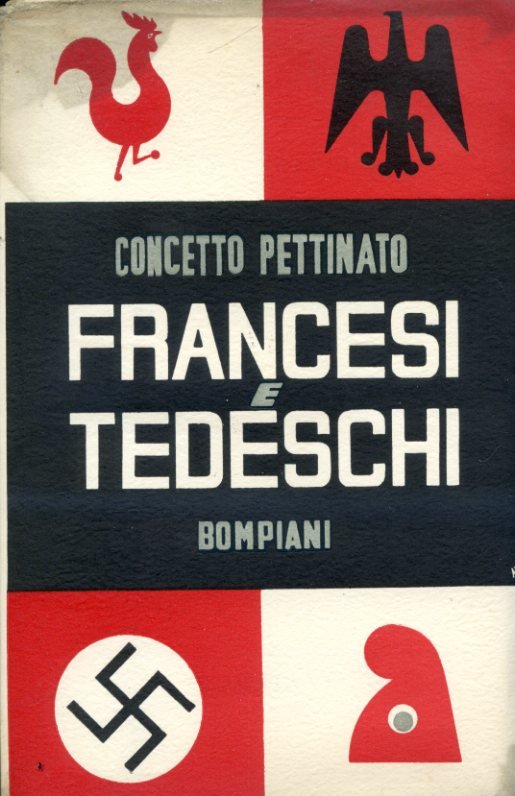 In-8°, pp. XV, 315, (3), brossura editoriale con sovraccoperta illustrata a più colori con motivi allusivi alla Francia e alla Germania. Una firma. Ottimo stato. Prima edizione. Analisi condotta alla vigilia dello scoppio del secondo conflitto mondiale delle secolari antinomie franco-tedesche e dei processi storici che condussero alla genesi del nazionalsocialismo e della Francia del Fronte Popolare. 'Al più antico dramma europeo, invece, il lacerante contrasto fra due grandi popoli, il francese e il tedesco, è dedicato questo volume. nella speranza che il popolo francese e il popolo tedesco portino insieme il loro determinante contributo al tentativo di dar vita a una realtà europea che abbia la capacità e la forza di condurre a salvamento la nostra civiltà occidentale e cristiana.'. Il Pettinato (Catania, 1886-Este, 1975), giornalista e poligrafo siciliano, fu ardente fascista che aderì alla Repubblica di Salò e che è oggi ricordato soprattutto per il famoso articolo 'Se ci sei, batti un colpo', che egli rivolse a Mussolini, sulle colonne de 'La Stampa', il 21 giugno 1944. Libri scelti, n. 53.