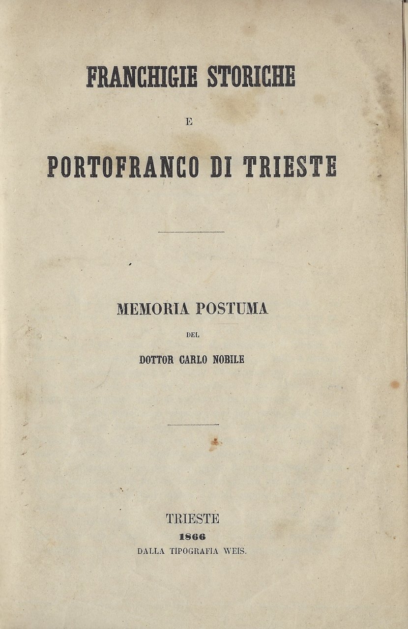 Franchigie storiche e Portofranco di Trieste. Memoria postuma del Dottor Carlo Nobile.