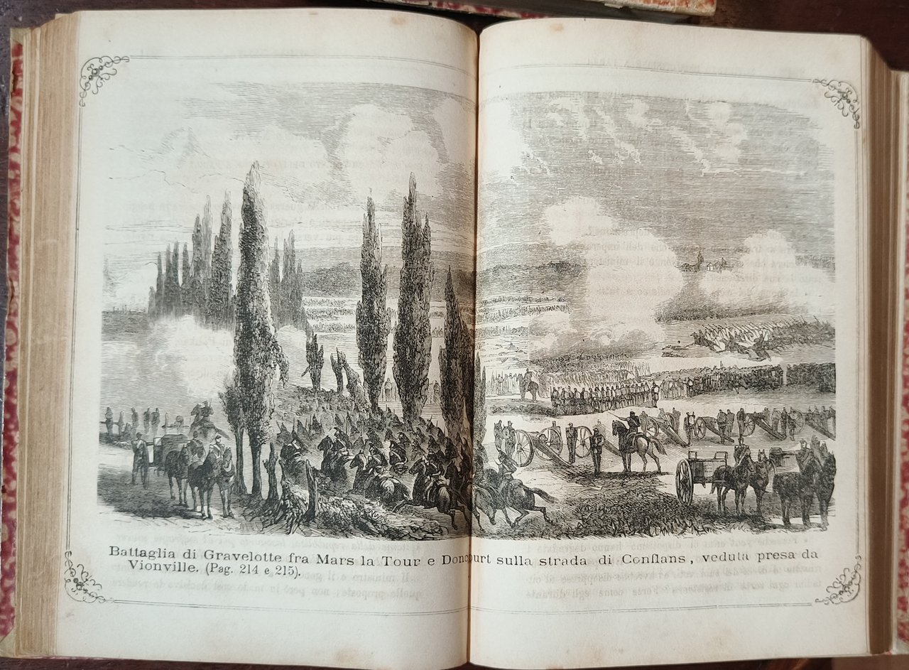 Cm 23. Legatura in mezza pelle verde con piatti carta marmorizzata rossa. Dorso con autore, titolo, fregi in oro. 2 vv. Pp. v. 1: 776; v. 2: 528. Numerose illustrazioni, anche a tutta pagina, di ritratti e scene di guerra. Segni di usura alla legatura. Qualche piccola macchia di umidità alle carte. Pagine 52-53 staccate, con lacuna nella parte centrale della mappa ma che non compromette il testo.