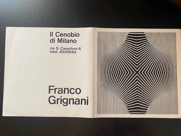 Pieghevole di 12 pagine con due opere riprodotte e ritratto dell'artista. Testo di Gillo Dorfles. Catalogo della mostra alla Galleria Il Cenobio 23 marzo 12 aprile 1966. Sc. U.